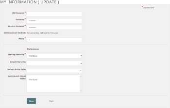 Click Settings. The My Information (Update) screen appears.